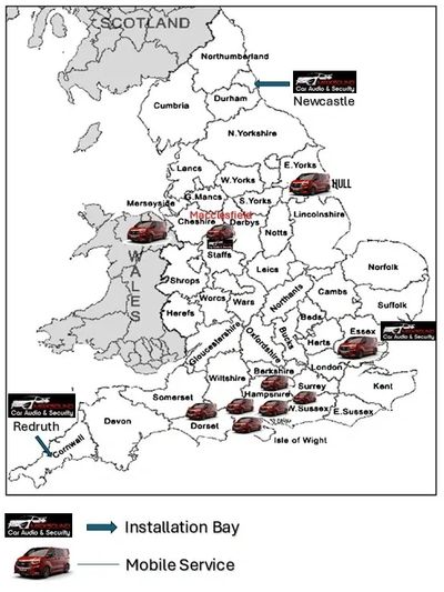 Our services are available in the following areas: Newcastle, Cheshire, Hull, Essex, Berkshire, and the South of England. Additionally, our Tracker installation service is offered nationwide. If you have any questions, please feel free to contact our team, and we will be happy to assist you.